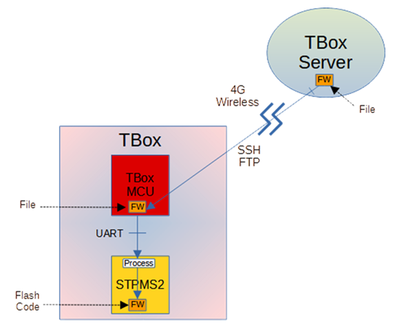- 該 FW 再透過4G或5G無線網路下載至車子TBox。